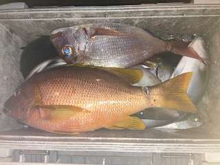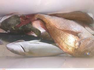 杉山氏は、良型マダイ龜田氏は、ブリに一歩手前のワラサ確保です!!