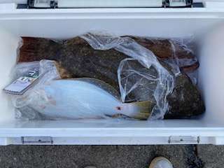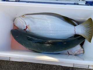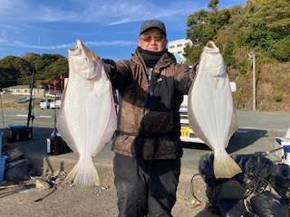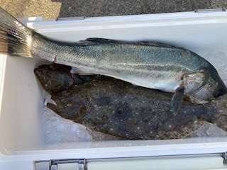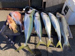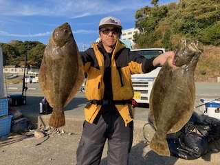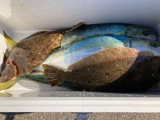 後の釣り座の水谷さんらは、良型のヒラメ3枚、4枚とブリも仲良くGETしてました!
